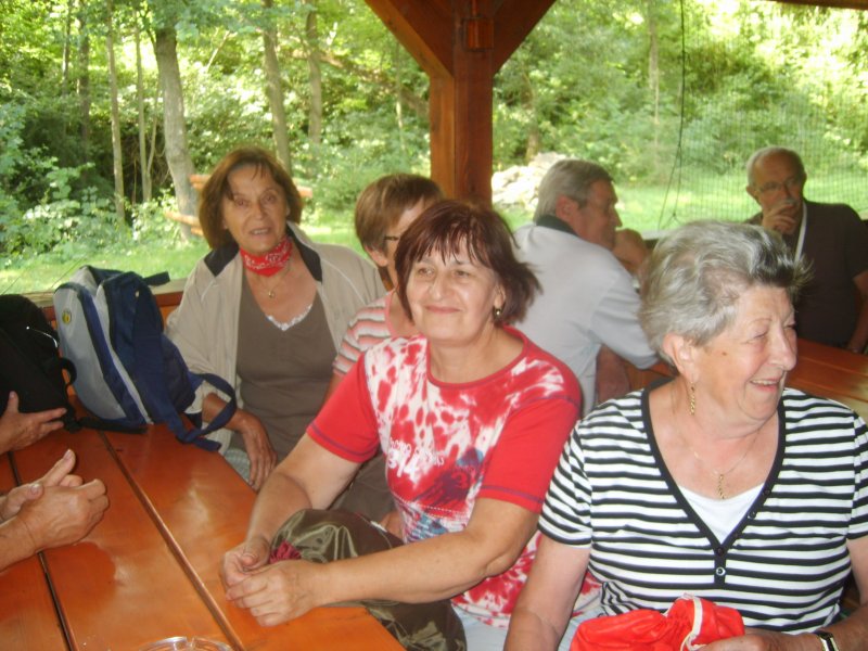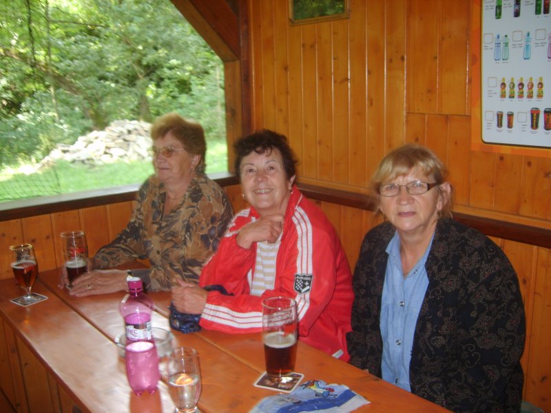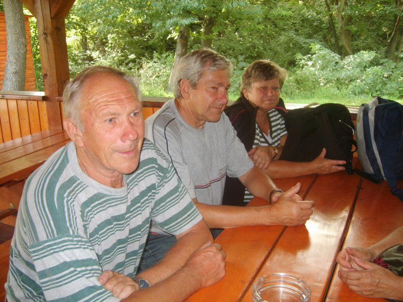 Je pravda, že pochod operativně zkrátili, nešli kolem celé přehrady, ale jen podél hráze a přímo k cíli : k hospůdce Na baště. Tam na ně čekalo dalších 6 členů, kteří se dopravili auty a Jarka Polanská přijela na kole.